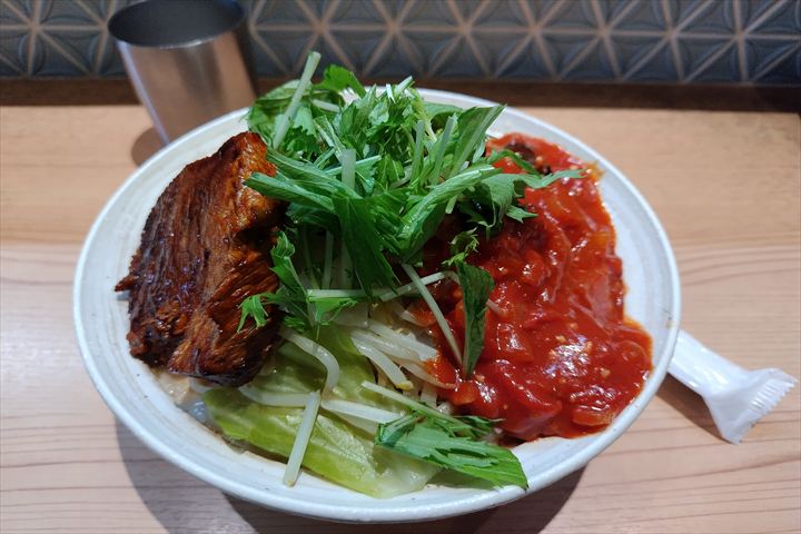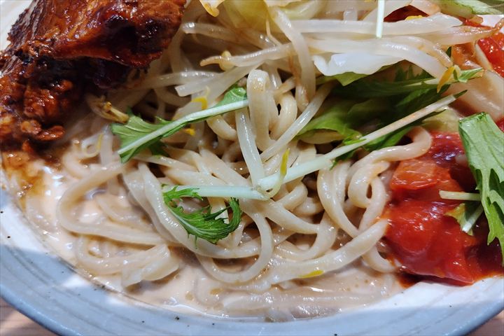 味は見た目通りトマトを感じる、クリーミーな冷やしトマト混ぜそばって感じです。