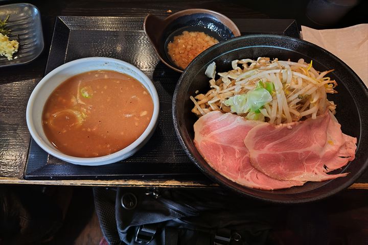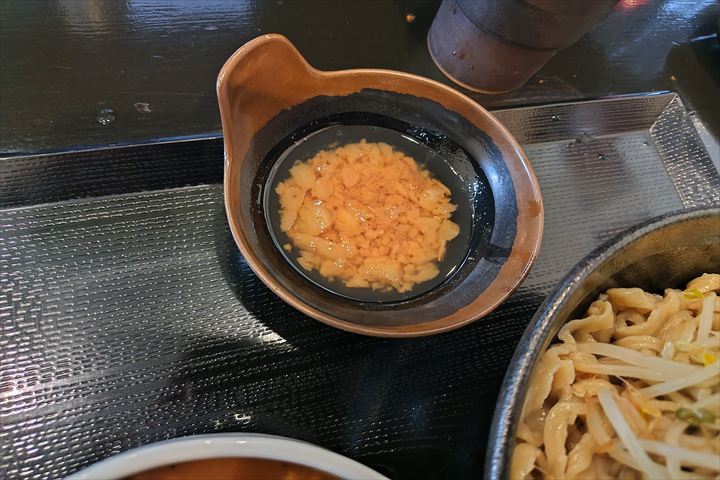 つけ汁には入れずに、麺やもやしを直接つけて食べるのがお勧めの様です。味変に良いです。