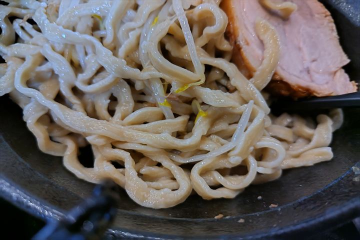 麺は独特でぼそっとした太い縮れ麺です。