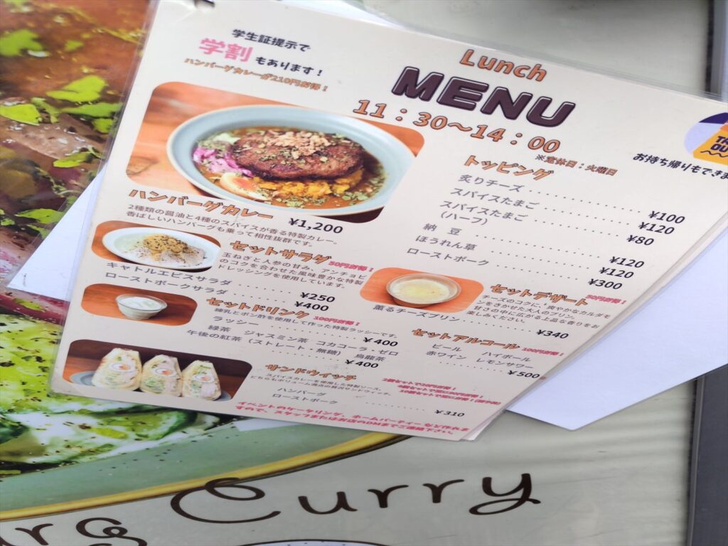 メインメニューはハンバーグカレーのみなので、迷わなくて良いです。