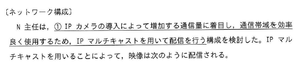 問題 本文中の下線③について、IGMPv3ではなくIGMPv2を使用するとした場合、考えられるIPカメラのアドレス設計を45字以内で答えよ。