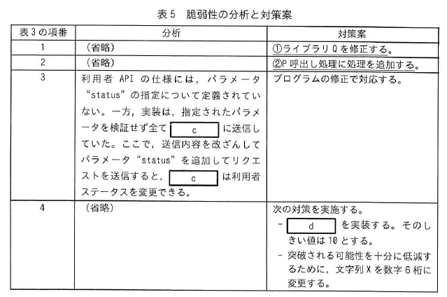 問題 表5中の「d」に入れる適切な処理内容を、30字以内で答えよ。