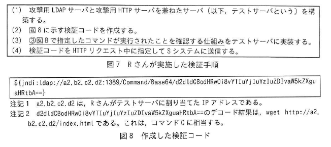 2:受け取ったSシステムの脆弱なJAVAライブラリが、入力された文字列に ${図8コマンド} パターンを見つけます。