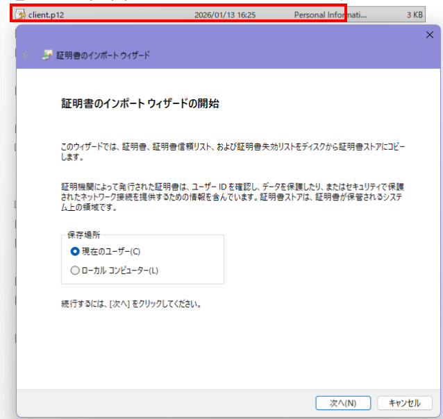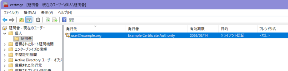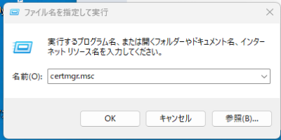 ファイル名を指定して実行で「certmgr.msc」を実行