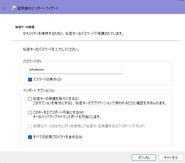 whatever という文字列は、FreeRADIUSが証明書を自動生成する際のデフォルトのパスワードとして定義されています。