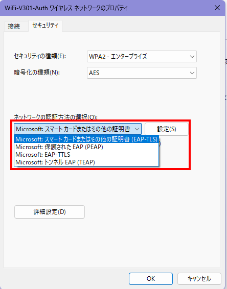 スマートカードまたはその他の証明書(EAP-TLS)を選択