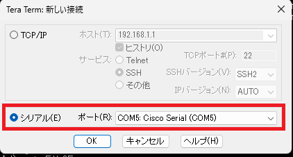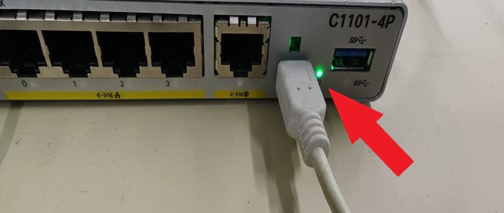 PCと接続したマイクロUSBをCiscoに接続して、コンソールの横のLEDが光っていればコンソール接続完了です