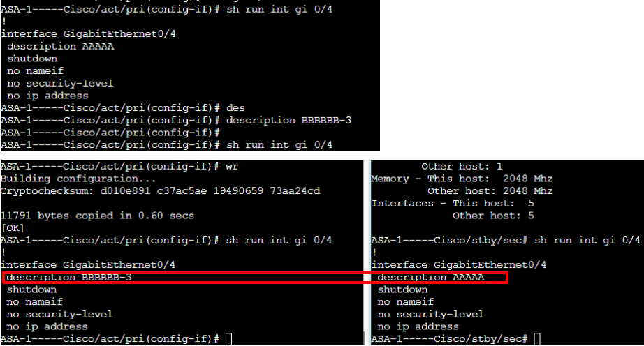 Failover lan断状態でASA-1の設定変更してみたが、同期されない