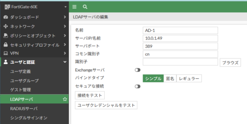 FortigateでLDAP・LDAPS連携の設定