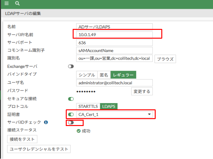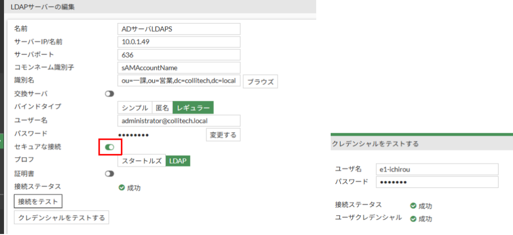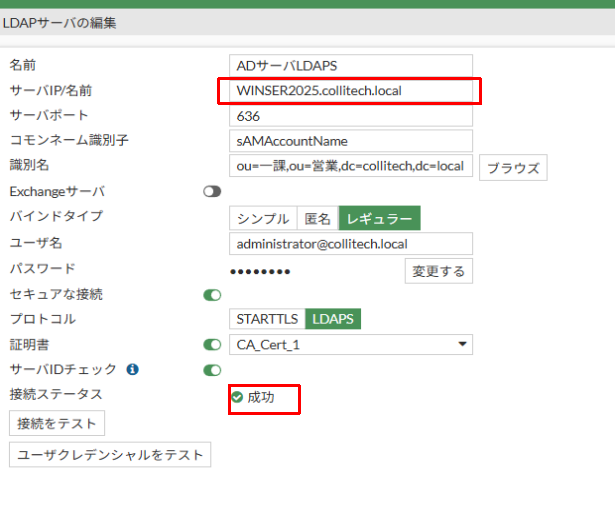 ADサーバでLDAPSを有効にしてあれば、特に問題なく成功します。