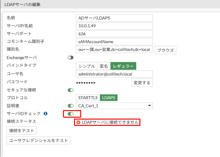 サーバIDチェックをONにすると失敗します。