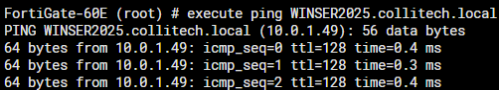 FortigateでADサーバのFQDNが解決できることが大前提です