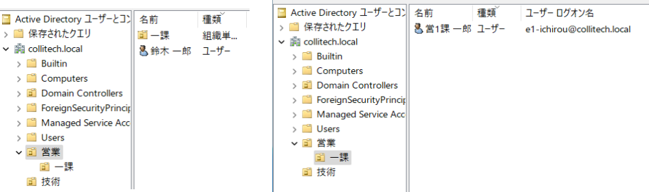 ou=一課,ou=営業,dc=collitech,dc=local ・・・これなら営業1課配下となり「営1課 一郎 のみ」